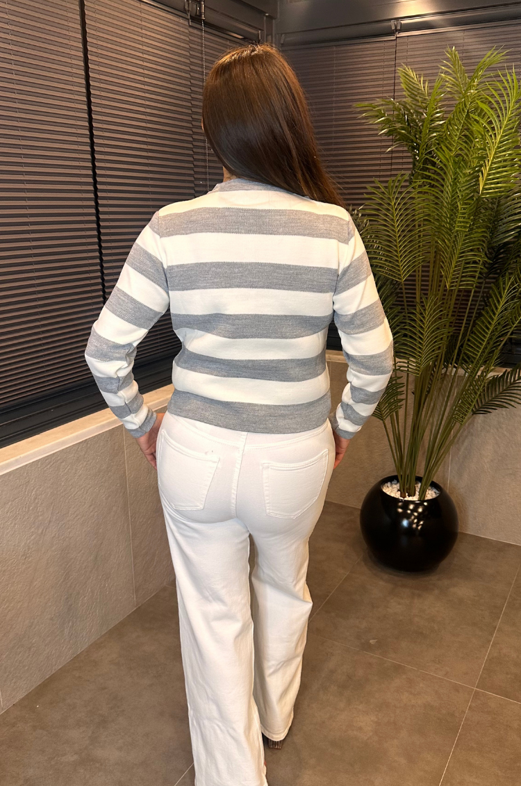 Çizgi Detaylı Gümüş Düğmeli Gri Hırka (2796)