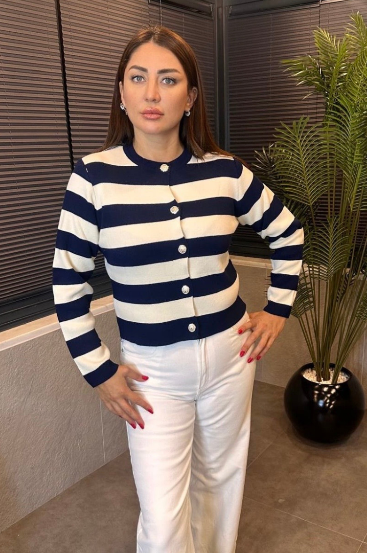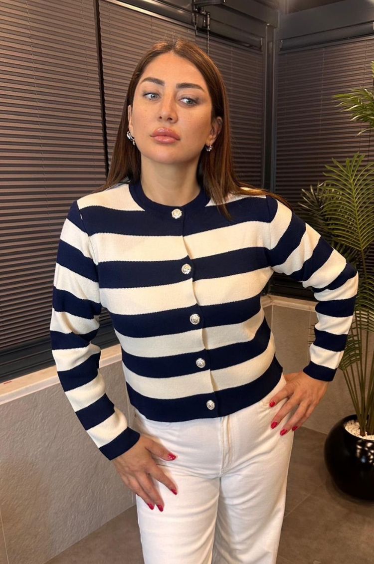 Çizgi Detaylı Gümüş Düğmeli Lacivert Hırka (2796)