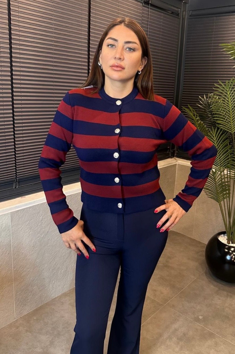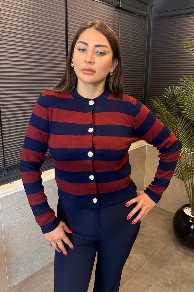 Bordo&Lacivert Çizgi Detaylı Hırka (2796)