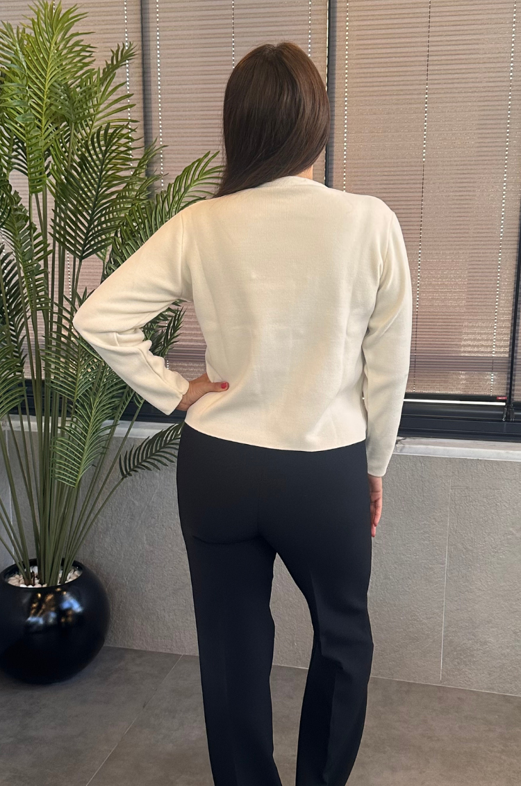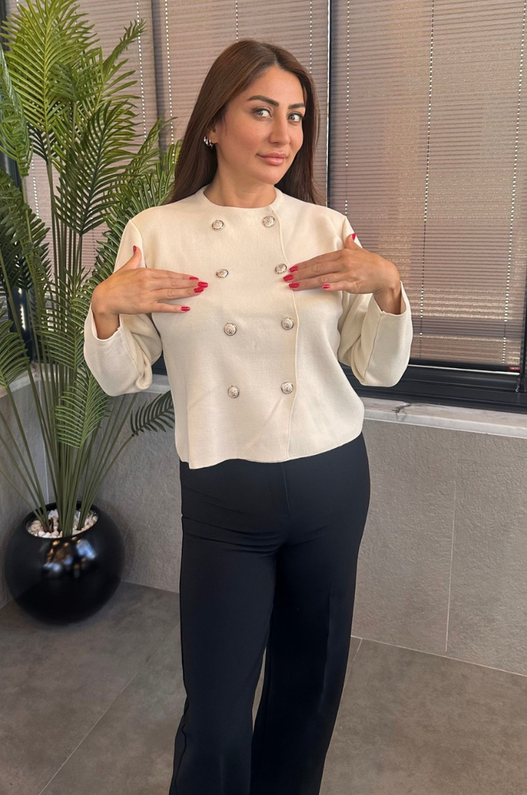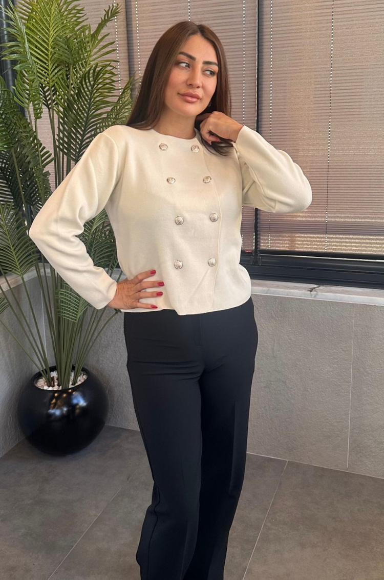 Kruvaze Düğmeli Ekru Triko Hırka (1909)