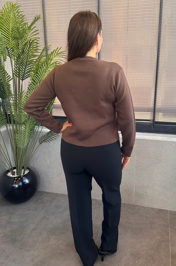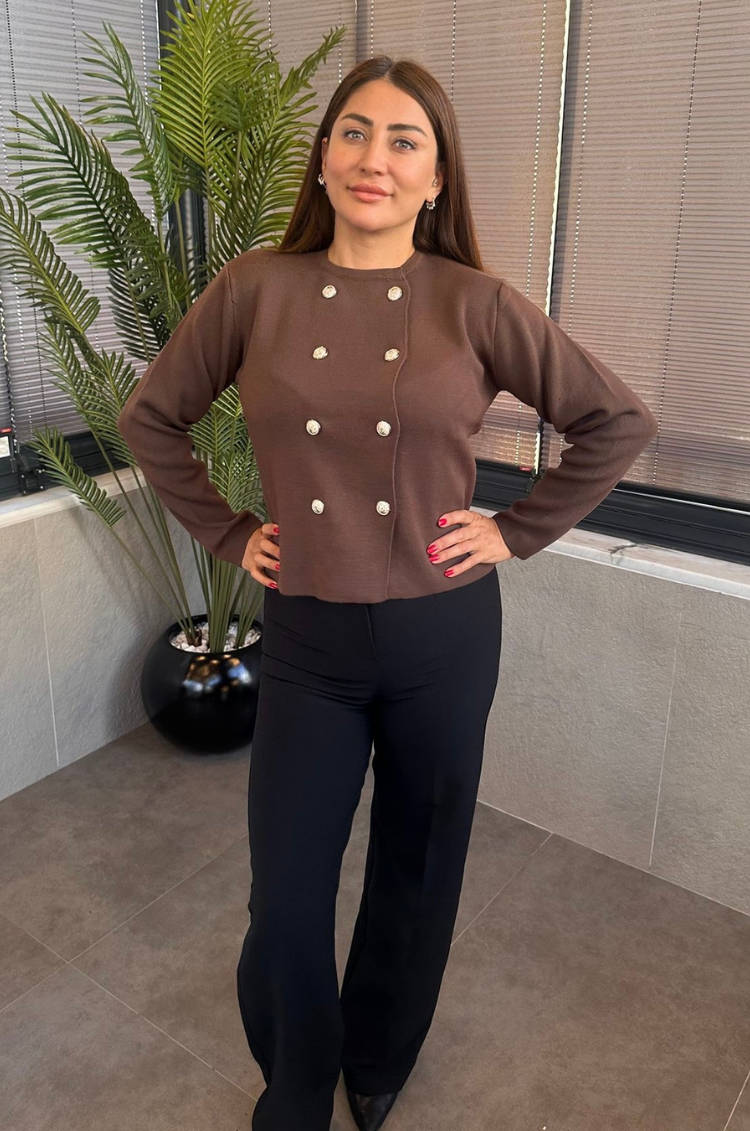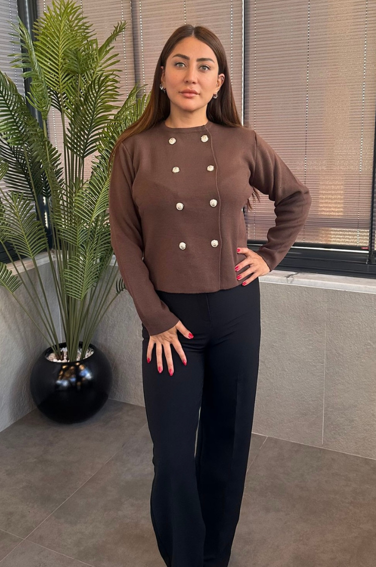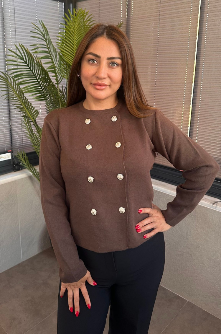 Kruvaze Düğmeli Kahverengi Triko Hırka (1909)