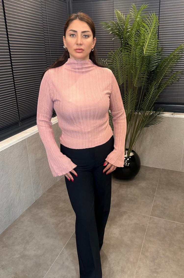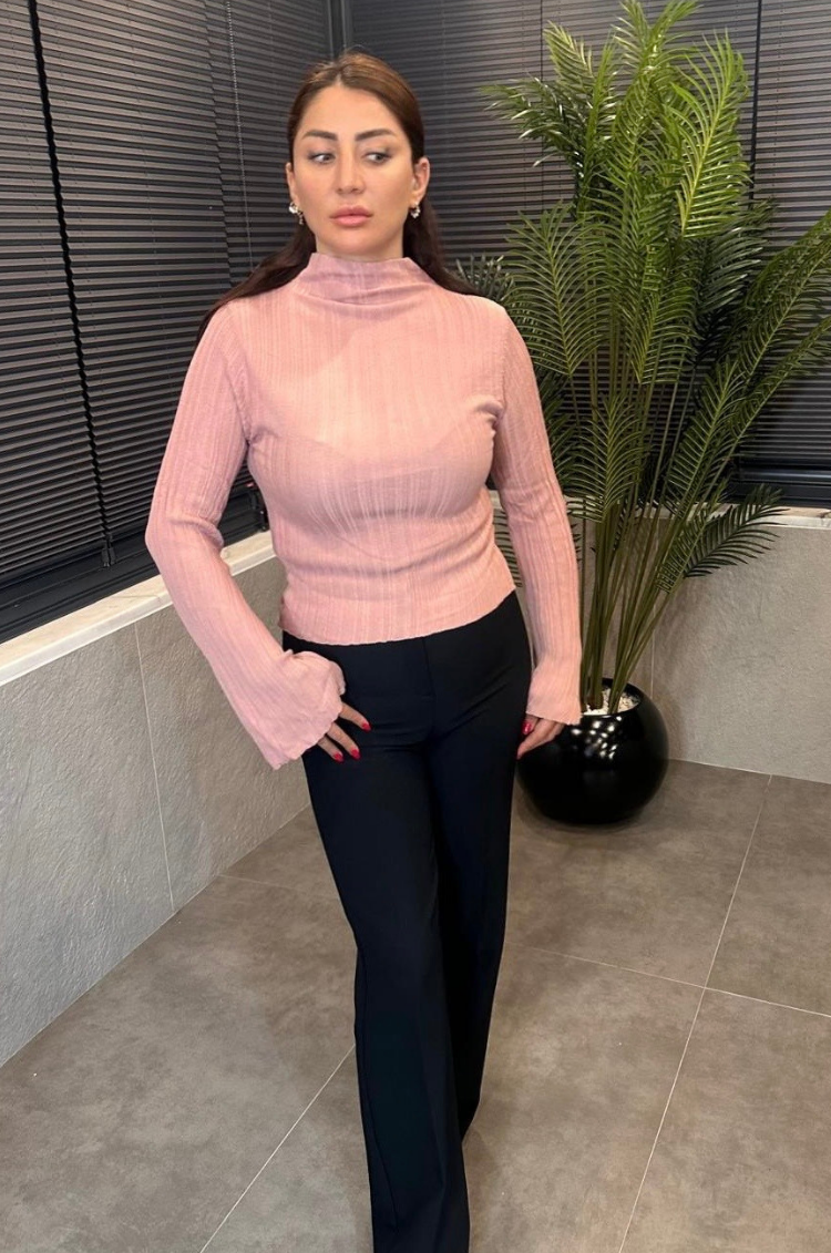 Pembe Volan Kollu Boğazlı Triko (3178)
